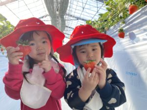 いちごをたくさん食べて保育園に帰ってきた子どもたちから甘い香りがしていました。