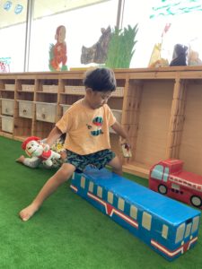 子どもたちの興味や発達を考えて先生が作ってくれるおもちゃが子どもたちは大好きなんです。