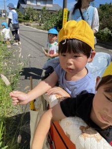 道端に生えている植物を手に取って触ったりします。