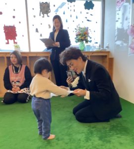3月末でにじ組(2歳児クラス)の4人とうみ組(0歳児クラス)の1名が卒園しました。