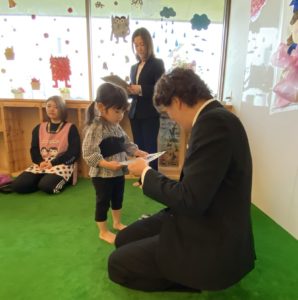 お話しの後は一人ずつ卒園証書と理事長先生からのプレゼントをもらいました。