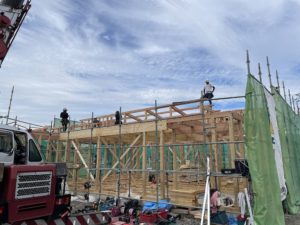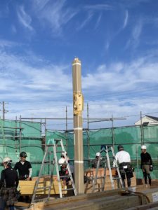 大勢の大工さんが安全に気をつけて作業をしてくれたおかげで、無事棟上げ式の一日が終わりました。