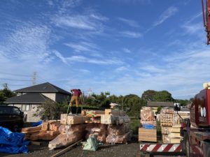 たくさんの木材・資材も運び込まれ、準備万端!建設が始まります。