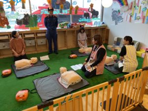 先日本巣市消防署による救急救命講習が保育園にて行われました。