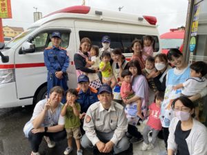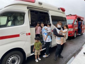当日は消防車と救急車もきてくれたので、子どもたちは興味津々。