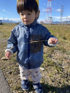 寒くなってカラカラに乾燥した雑草を手にして楽しそうなお友だち(*^^*)