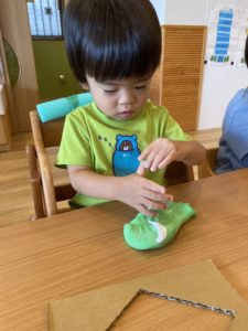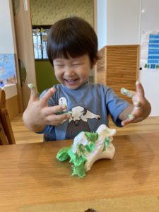 粘土を混ぜて、遊びながら楽しそうにプレゼントを作っていました。