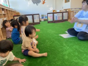 先生と歌あそびをしたり楽しみながら子どもたちは祖父母参観の日を待ちました。