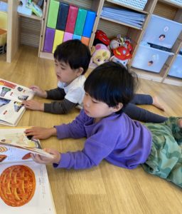 にじ組(2歳児クラス)の子どもたちは一緒に絵本を読んだり、お散歩で何かを見つけたり、同じ時間を共有してお話しする姿がステキです(*^^*)