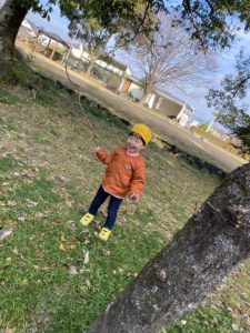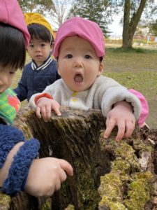 毎日たくさんの木々に囲まれて、思いっきり走ったり、古墳の階段をかけ上がったり、木の実や葉っぱでお料理したり、お店屋さんを開いたり。