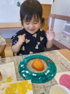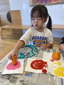 野菜と絵の具の感触を確認している子もいましたよ。