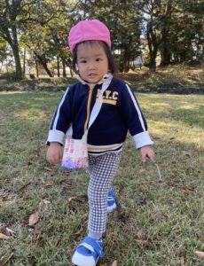 一番小さなおともだちは先生と一緒にお散歩を楽しんでいます。
