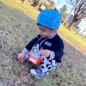 0,1,2歳児のお散歩~先生お手製ポシェットが宝物でいっぱいです~