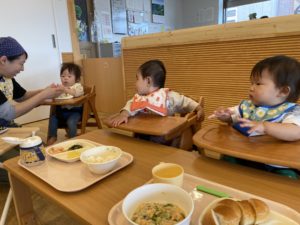 0歳児クラスさんも「手を洗ってごはんだよ~!」と