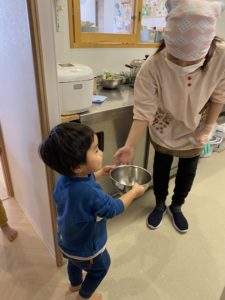 調理の先生に話をしたいという子どもの姿がとても素敵です。