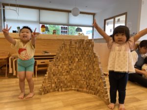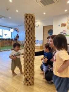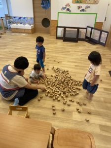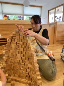 木のおもちゃでなにかを作っている先生を発見👀✨