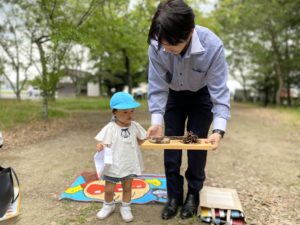 保育園に戻ってからも、木のおもちゃでの積み木や