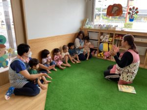 朝の体操のあとは、毎朝手遊びと絵本の読み聞かせタイム🍀