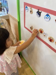 好きな所に貼って、かわいく並んだアンパンマンたちです♪