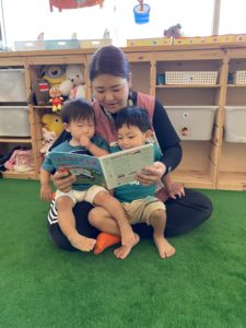こちらでは、兄弟そろって絵本の読み聞かせをしてもらっています。