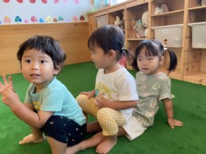 0歳1歳2歳児さん、みんなゆうな先生のところに大集合(^^)/ どこにお出かけするのかな?