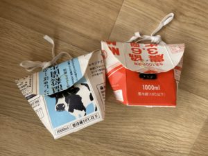 牛乳パックの中に新聞紙を詰めて、ガムテープで封をし、色紙や画用紙を貼り付けるととっても丈夫!椅子や机、踏み台なども作れます。