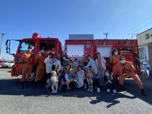 最後に、消防士さんたちと一緒に消防車前で記念撮影!嬉しそうな子どもたちでした。