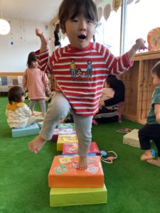 昨日はあいにくの雨でしたが、室内で身体を使って遊びました♪