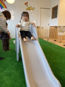 すべり台を滑って遊んだことを覚えており、こんな遊び方も楽しめちゃう子どもたちです!