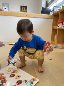 よ~く見ると、種類を分けて、種類ごとに並べて貼り付けているようです(^▽^)とっても集中して遊んでいました。自分の中で完成すると、「先生、見て~!」と嬉しそうに見せてくれていましたよ♪
