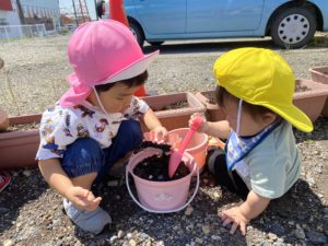 C-NOTE保育園の園庭には子どもたちが大好きな花や植物、
