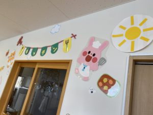 季節によって吊るし飾りや、壁に貼る壁面も変わります。