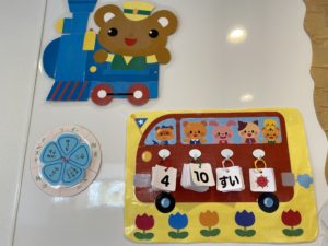 今日は何日かな?その日の天気を子どもと確認してプレートを変えると、嬉しそうにしています。
