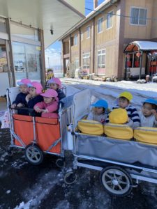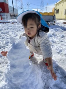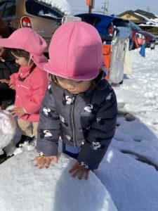 昨日は室内での雪遊びの様子をご紹介したので、今日は屋外での雪遊びをご紹介したいと思います(^^♪