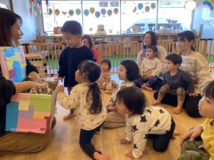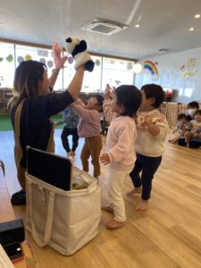今年度の英語教室もあと残すところ1回!2歳児クラスのお友だちにとっては最後の英語教室です。みんなで楽しく元気にハンナ先生と歌って遊ぼうね!