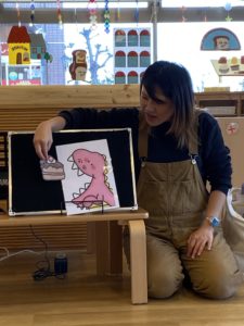 パペットの動物たちや恐竜が登場します。今回はバレンタインの日だったこともあり、恐竜があま~いスイーツを持って登場です!
