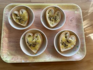 この日のおやつはハートパイ♡牛乳を使ったやさしい味です。