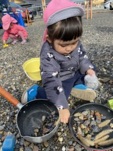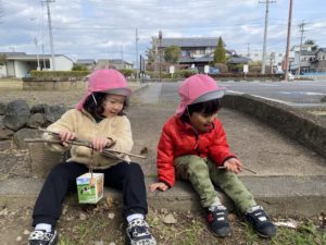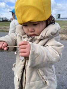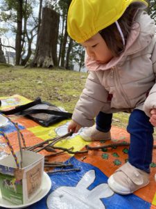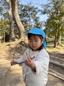 楽しかったのか後日公園でも長い枝を使って、大きな三角を作っていました♪楽しい経験が心に残ると、それを発展させて遊ぶことにもつながりますね(^^)