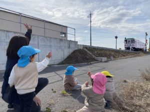 土曜保育で行くお散歩の途中で、電車に「ばいば~い」と手を振るのも楽しみのひとつ♪