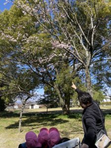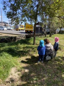 「桜がもう咲いてる!」と先生が見つけると、みんなで「本当だ!!」と一緒に観察。