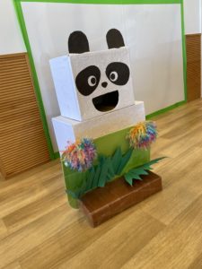 子どもたちと遊びの中でちぎって貼りつけて飾りをつけた箱は、こんな姿に変身しました!