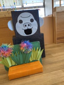 朝のおやつを終えると・・・保育室には大きな動物がお出迎え♪