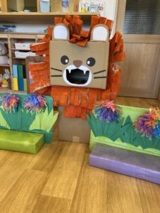 大きなお肉!ライオンさんはどこかな~?と探しに行きます。