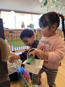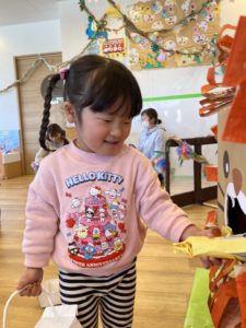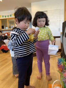 昨日は子どもたちが楽しみにしていた「お楽しみ会」がありました♪今まで一緒に過ごしてきた2歳児クラスのお友だちと一緒に遊ぶいつもとちょっと違う遊びを楽しむ日!