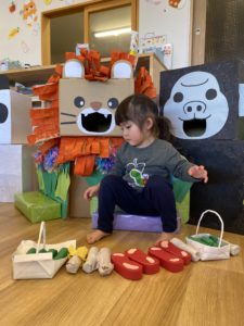 役割を交代して遊んだり、自由に歩いて動物とのふれあいを遊んだり、たくさん楽しめました。「もうおしまいなの~!?」とまだ遊びたい!という声も♪