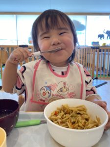 苦手な食材があった時も、1口挑戦してみると「先生見て~!食べれた!」と嬉しそうに教えてくれる声も聞こえてきます。無理なく、いろんな食材を食べてみるきっかけになるといいですね。