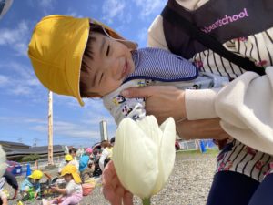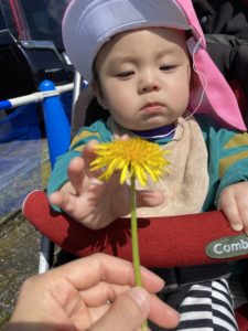 先生に抱っこしてもらいながら、お花見です♪ちょんちょん!と触ってみることもでき、この笑顔です(^^)