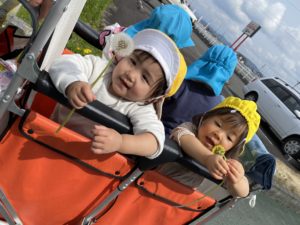 C-NOTE保育園では、園庭や近くの公園だけでなく、近くに電車が走っているので、それを見に行くこともできます。乗り物が好きなお友だちは通り過ぎる電車に大興奮♪空を飛ぶ飛行機も見つけるのが得意です。