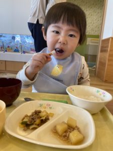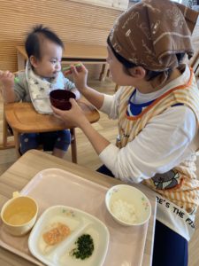 「はい、あ~ん!」と給食も食べられると、嬉しそうな表情も見られ、嬉しいです♪