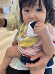 わたしも!と、おにぎりをぱくり!と食べてます♪